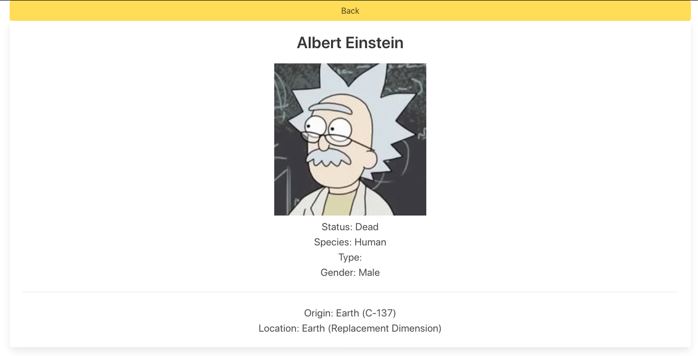 Para el caso de esta charla, desarrollé un ejemplo bastante simple haciendo uso de una API pública de la serie (Rick & Morty) para listar a los personajes de la misma.