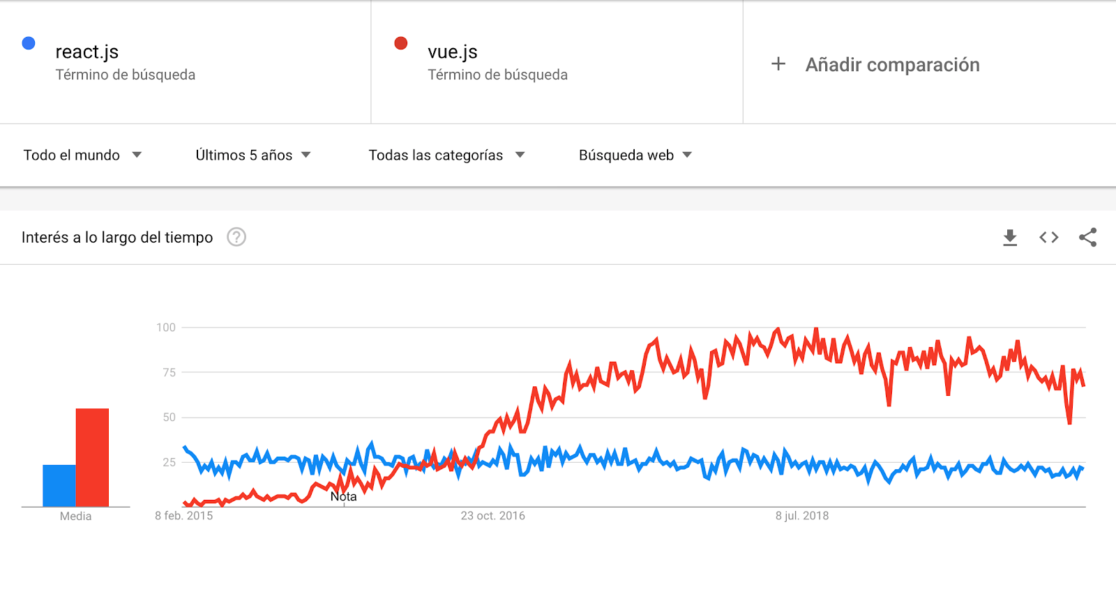 Tendencia de interés Vue vs React